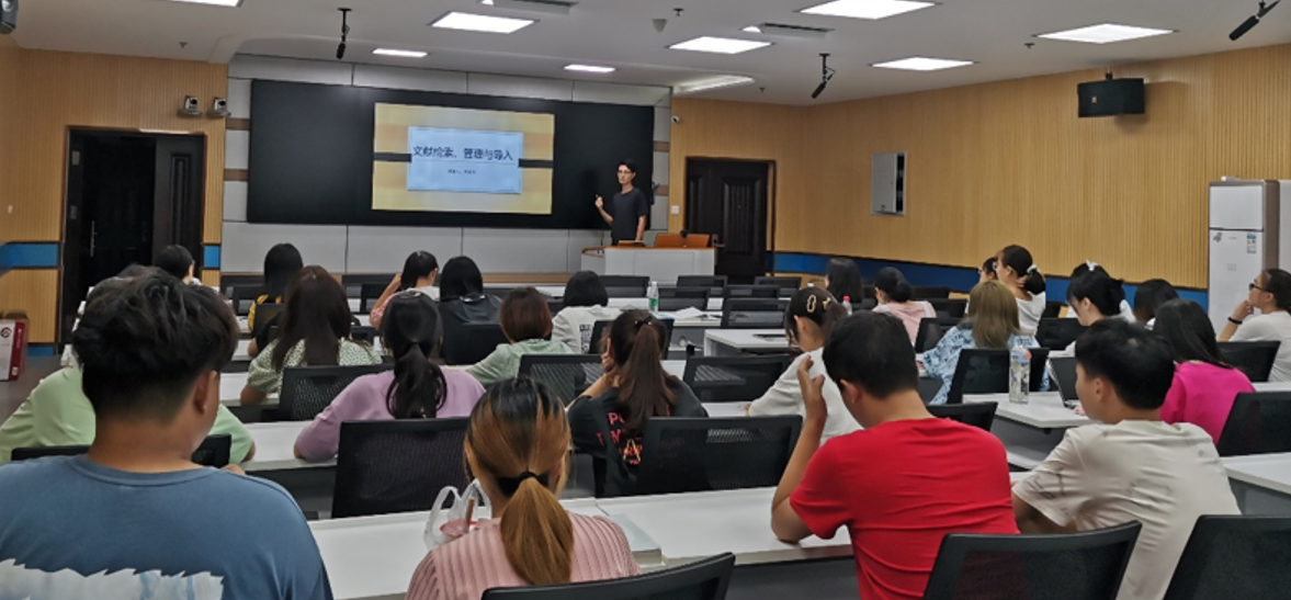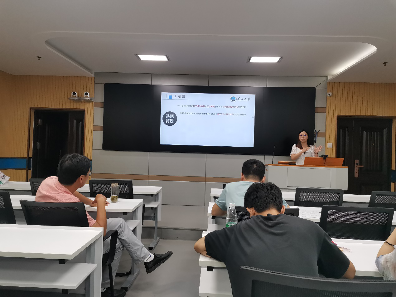 会议初始,研三的冯全升同学以文献搜索、管理与导入为主题,分享了如何快速查找与自己研究相关的文献,并向同学们罗列了国内外顶级期刊名称;接着展示如何使用noteepress对文献进行管理,讲述了自己独特的管理思路,强调同学们要在实践中找到适合自己的方法;最后向同学们展示了怎么做文献笔记,中文文献提取关键内容并附上文献原文标题,英文文献概述关键信息用中文写在开头括号内,方便下次查找理解。最后连老师强调文献管理的重要性,提醒同学们一定要找到自己喜欢的方式;补充说明noteepress还方便插入参考文献的格式,同时加强对格式重要性的认识。