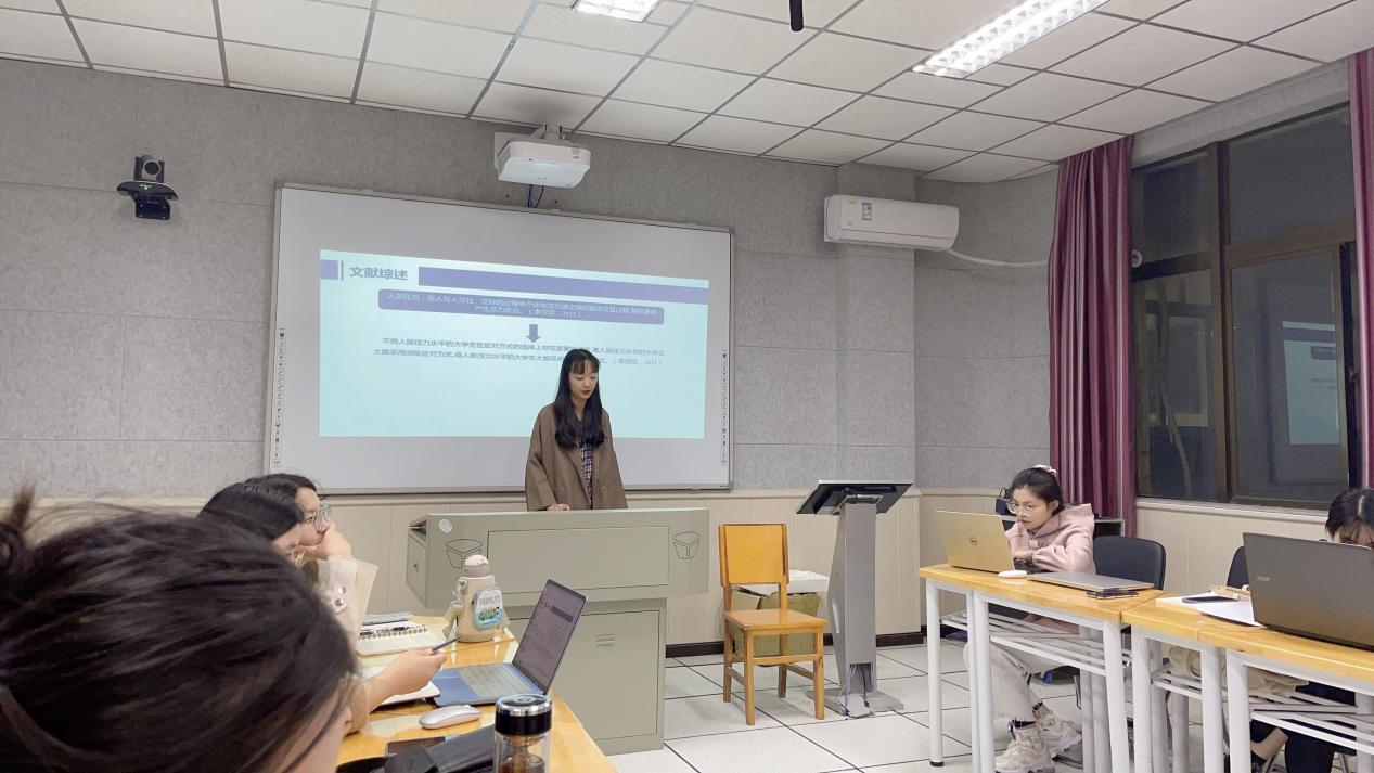 通讯员 吴新丽2021年111日,第97期社会心理学学术例会在11教201智慧教室举行。参加这次例会的有胡修银老师,郑雪艳老师和张艳红老师,以及研一至研三的同学们。本次会议由梁婷同学主持,由张竞月和廖七月两位同学进行汇报,张竞月汇论文为《大学生未来自我连续性与从众消费心理的关系研究》廖七月汇报论文为《交叉分类影响高阶层对低阶层的刻板印象》。