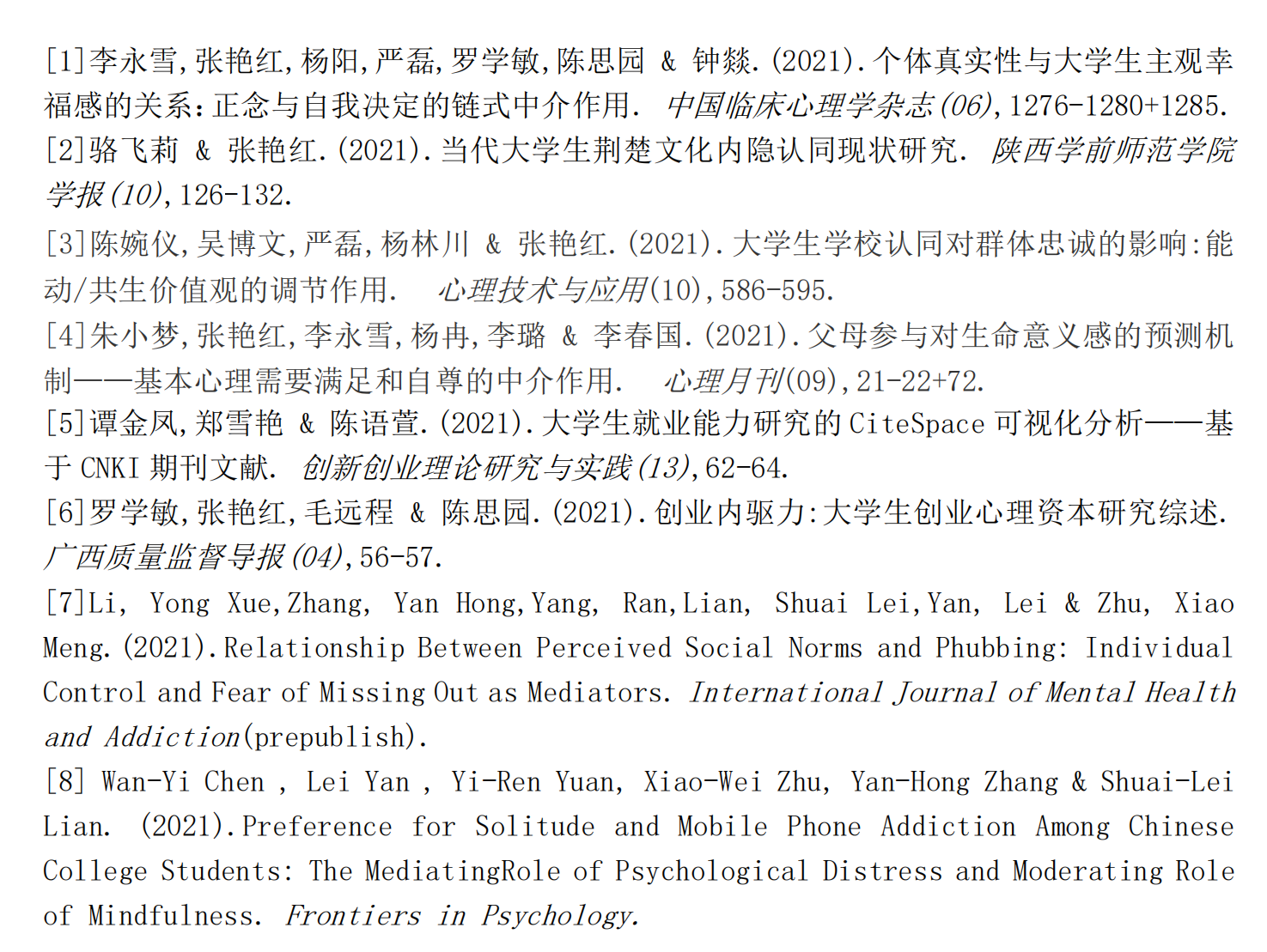 (1)师生不断产出科研成果,今年共发表被SCI/SSCI收录的英文期刊论文2篇,被CSSCI收录的中文期刊论文1篇,普刊5篇,共计8篇。