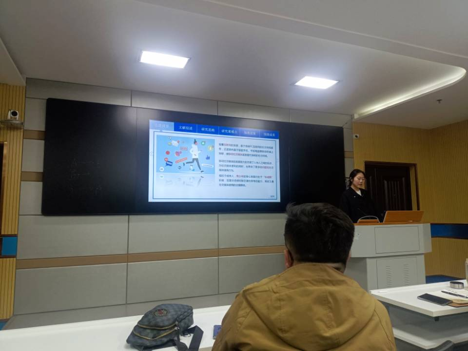 接着,由研二同学王品逸进行开题汇报,题目是《童年逆境对问题性社交媒体使用影响的心理机制及教育启示》。本研究分为4个子研究,层层递进,逻辑分明。研究一中首先探讨青少年问题性社交媒体使用的总体水平及基本特点。在此基础上进行研究2:探讨童年逆境对与问题性社交媒体使用的动态关系以及未来时间洞察力的中介作用,并分别进行变量水平和个体水平的分析。研究3中进一步探讨未来时间洞察力的中介作用和个人成长主动性的调节作用,最后,研究4给出改善问题性社交媒体使用的教育启示。