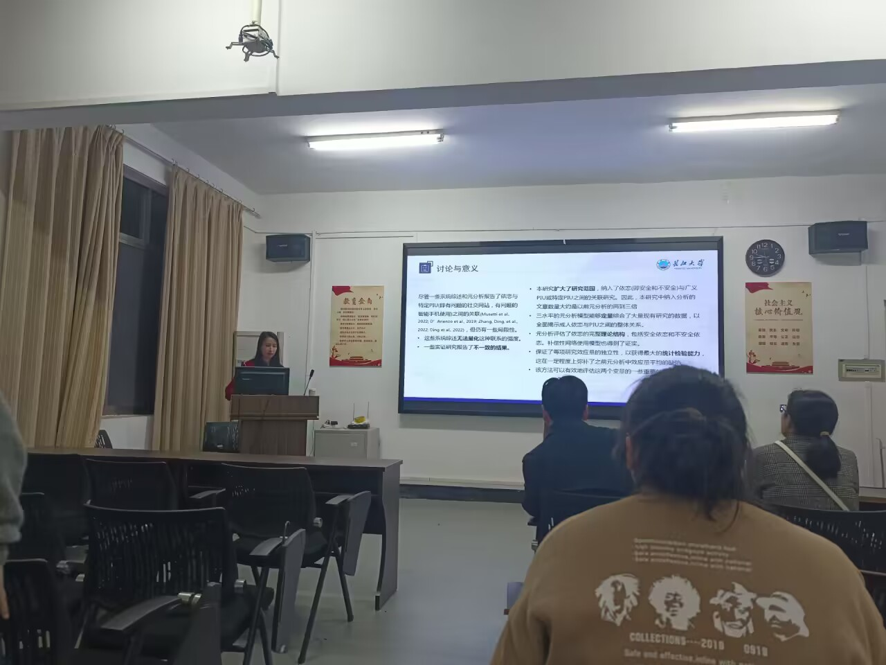 首先,曹晓萱同学给我们分享2023年发布在《Computers in Human Behavior》杂志上的一篇文献,文章的题目是《The association between adult attachment and problematic Internet use: A three level meta analysis》,文章通过三水平元分析的方法探究了依恋与有问题的互联网使用(PIU)之间的关系。本研究确定了82项研究,报告了66456名被试,包括289个效应值。整体关系结果表明,安全型依恋与PIU呈负相关,不安全依恋与PIU呈正相关。汇报过后,朱晓伟老师首先表示汇报时间过长,可以删减一些不必要的部分,然后表明现在在变量上很难找到突破,所以大家都在使用新的方法,我们要多多掌握。随后周婷老师提出了自己的疑问,该方法的适用价值在哪里,对于我们毕业论文写作的帮助在哪里,不能为了报文献而报文献。