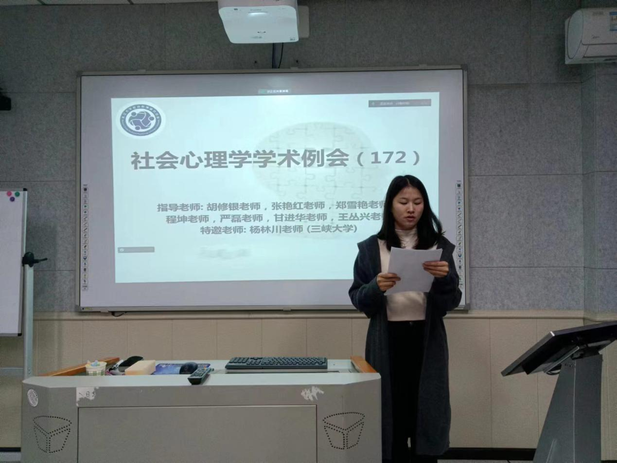 参加本次例会的老师有严磊老师,甘进华老师和来自三峡大学的杨林川老师,以及14名心理学研究生、35名本科生助理,本次例会由大三鲁欣怡同学主持,由郎浩原、高馨燚、姚露馨进行文献分享汇报。