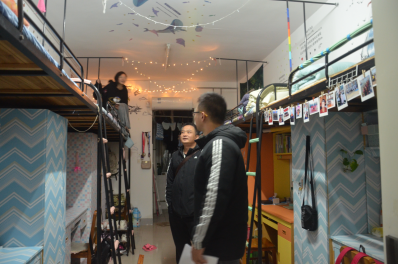 晚七点,所有老师在南苑学生宿舍18A楼下集合完毕,首先前往女生宿舍检查。同学们热情迎接老师。老师们仔细检查门框、洗漱区等各处卫生死角及重点区域,指出存在的问题;与同学们交谈,了解她们的生活情况;对文化建设较好的宿舍提出表扬。女寝检查结束后,老师们一齐前往男寝参观交流。男生宿舍相较于女生宿舍的文静清新,更显活泼与动感。老师与男生们交流学习、生活状况,并对他们进行了安全知识的教育,氛围轻松,场面和谐,时不时爆发阵阵欢声笑语。在亲切的交流中向学生进行了宿舍安全文明教育。