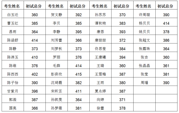 附录: 小学教育专业进入复试考生初试成绩如下: