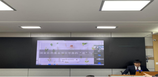 (通讯员:邓林远)2021年12月5日上午,长江教育与体育论坛第十三讲在文科楼910举行。特邀韩山师范学院温搏教授以《国家社科基金项目申报的“道与“术”》为主题与师生进行学术交流,线上线下同步进行。学术报告会由熊猛副院长主持,我院部分教师及研究生参加了本次活动。