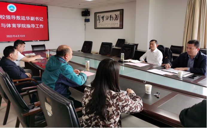 2022年4月13日下午,校党委副书记敖廷华在人事处副处长王辉的陪同下到我院调研指导工作。学院党委书记高明成、院长张相乐以及学院其他领导班子成员、各系主任、各科室负责人等参加会议。会议由高明成书记主持。