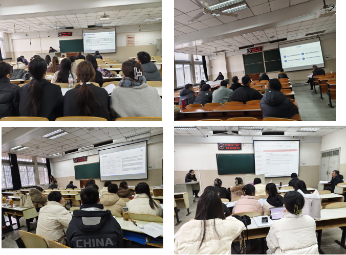 参加本次预答辩的研究生有110名,设置了8个答辩小组,分别在12教1楼和2楼各教室开展学位论文中期检查暨预答辩,每组由3-5名导师担任评委。我院2023级、2024级全体研究生观摩了此次预答辩。
