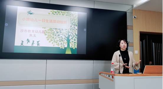 (通讯员 焦佑琪,杨红,徐发秀) 11月12日下午2时30分,304永利集团登录入口在东校区文科大楼910举行2019级学前教育专业考察主题报告。沙市教育幼儿园朱玉园长围绕主题“小班幼儿一日生活活动组织”做报告。会议由我院学前教育系主任徐发秀博士主持,杨红老师出席,2019级学前教育专业全体本科生参加。