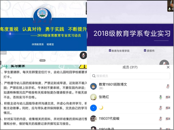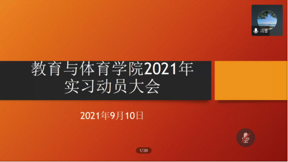 (通讯员:陈博文)2021年9月10日晚上7点,学院以线上会议形式召开了2018级全体学生专业实习动员大会。学院副院长张艳红、体育教育系主任杨青宝、教育学系主任薛振伟、学前教育学系主任徐发秀及各专业实习点指导老师以及2018级全体学生参加了此次会议。会议由学院实验与实践教学中心主任冯雪老师主持。