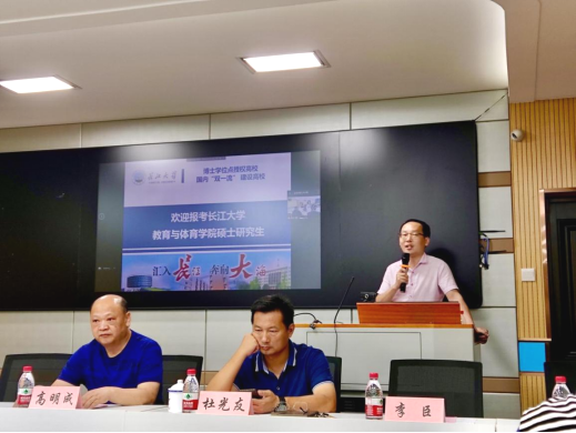 随后,熊猛副院长对我院2023年研究生招生政策进行宣讲。他首先对长江大学的基本情况作了简要介绍,紧接着从学科设置、导师队伍、科研水平、人才培养质量、社会服务成效五方面突出强调了304永利集团登录入口的特色及优势(特别是2022年有3位硕士毕业生成功考取华南师范大学、西南大学、陕西师范大学的博士研究生),最后介绍了我院2023年研究生招生优惠政策,并勉励大家踊跃报考版权所有:中国·永利集团(304·VIP认证)登录入口2023年硕士研究生。
