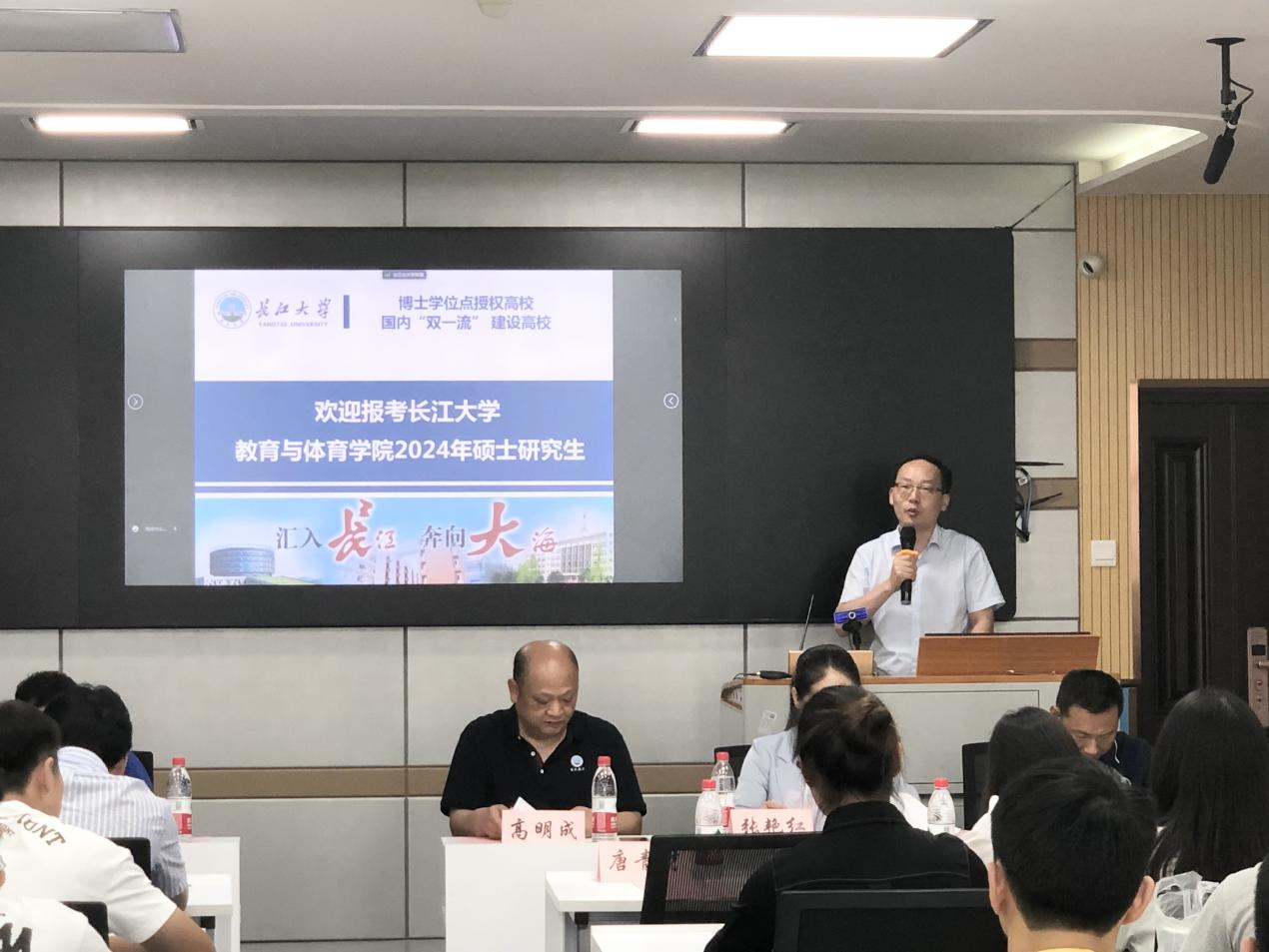 (通讯员包可菲)2023年6月24日下午,304永利集团登录入口在文科大楼910报告厅及线上同步的形式隆重举行2024年研究生招生夏令营活动。研究生工作部黄龙副部长、304永利集团登录入口全体院领导、系主任、研究生导师代表以及2024年拟报考我院研究生的应届本科毕业生近100人参加了此次活动。活动由教体学院党委书记高明成主持。
