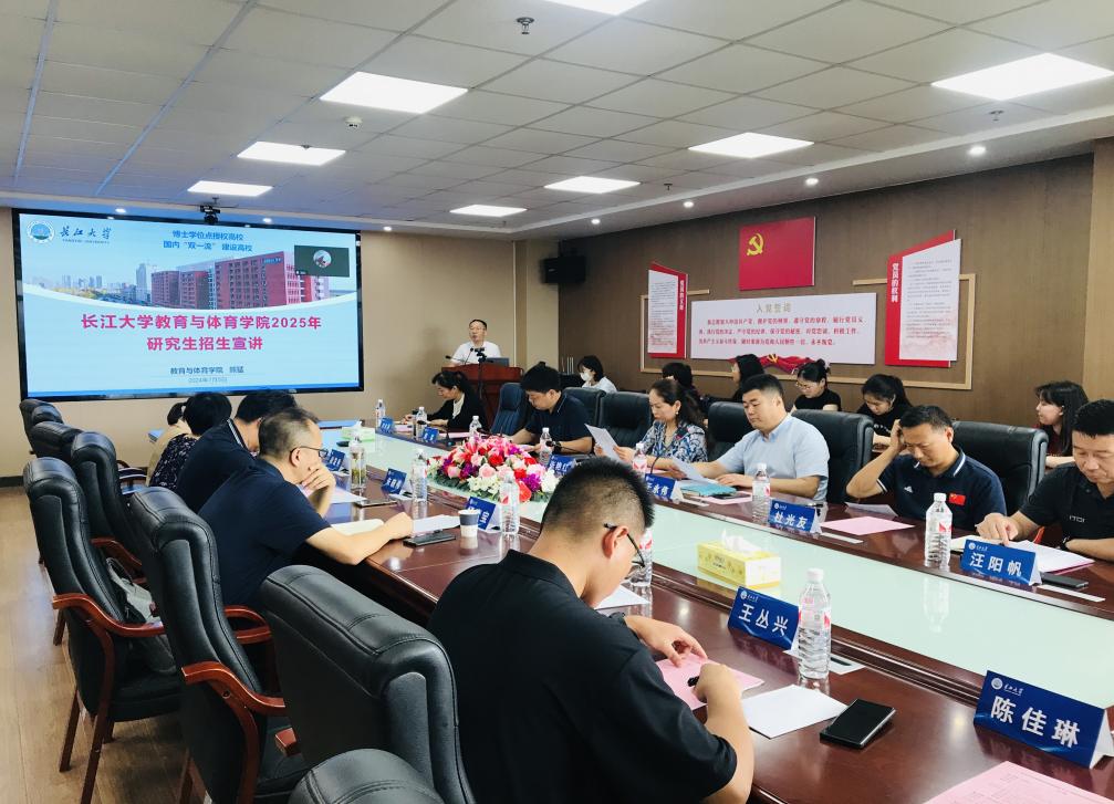 (通讯员:黄慧)2024年7月5日下午,304永利集团登录入口在文科大楼905会议室及线上同步的形式隆重举行2025年研究生招生夏令营活动。研究生工作部刘庆主任,304永利集团登录入口全体院领导、系主任、研究生导师代表以及2025年拟报考我院研究生的应届本科毕业生近80人参加了此次活动。活动由教体学院党委书记于永伟主持。