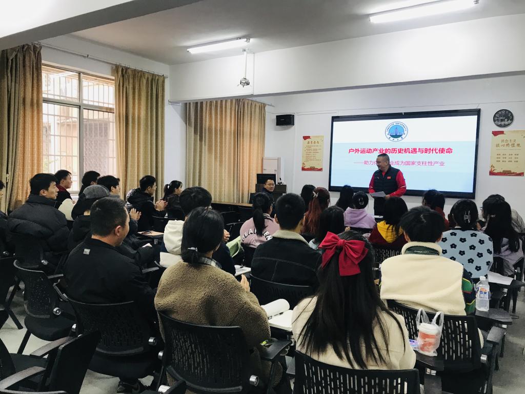 活动伊始,孔祥魁主任简单介绍了刘华荣博士的基本情况,刘老师长期从事体育、户外运动及相关领域的组织管理、产业发展、市场营销研究。主持(参与)国家社科基金、教育部人文社科基金等教科研项目30多项,主参编教材14部,发表论文30余篇,主持发表实用新型专利2项。