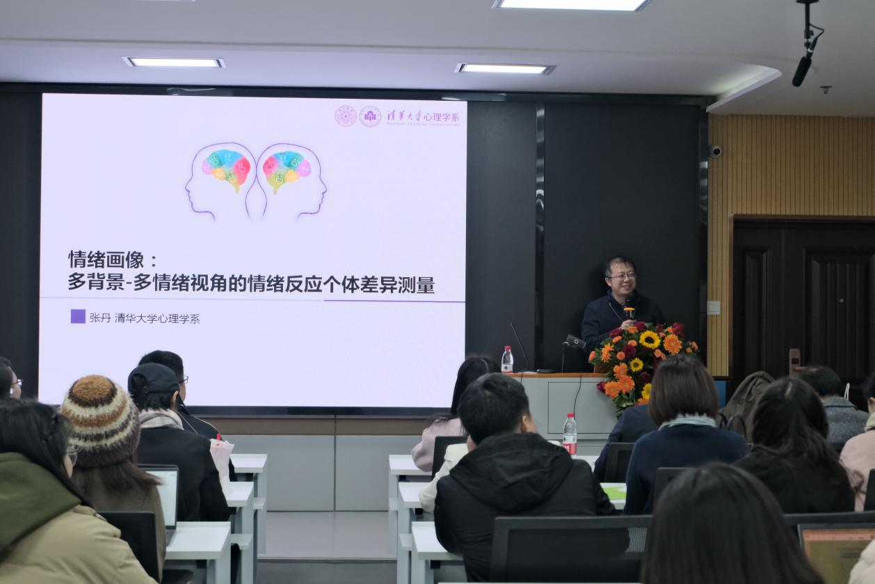 继师生座谈之后,当日晚间张教授又在文科楼910报告厅作了一场主题为“情绪画像:多背景—多情绪视角的情绪反应个体差异测量”的学术报告。我院教师张艳红教授、周婷博士、郑红涛老师、王文静副教授、朱晓伟副教授、严磊副教授、胡修银副教授、甘雄副教授、连帅磊副教授、卢忠耀博士、冯雪博士以及校内外100余名师生参加了此次报告。报告会由院长张艳红教授主持。