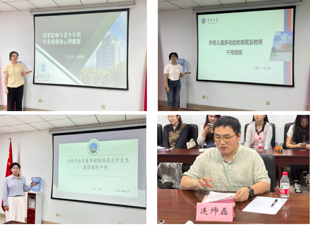 随后,304永利集团登录入口的三位同学也进行了分享。徐媛钰同学则以《同辈影响与青少年的学业成绩和心理健康》为题,分析了提高班级内学生能力的多样性,不仅有利于每一位同学能力的提升,而且不会给心理健康造成负面的影响。赵玉娇同学以《学前儿童多动症的表现及教育干预措施》为题,从心理干预治疗、医教和家庭系统疗法、康复治疗等方面展开分析,教育干预有利于学前儿童多动症的治疗与愈后。张泽同学以《闪动疗法对童年创伤经历大学生焦虑情绪的干预》为题,展示了闪动疗法对童年创伤经历大学生的焦虑情绪改善有重要意义。各位嘉宾老师们对五位主讲人的汇报分别进行了详尽的点评,并给予了实质性的建议。