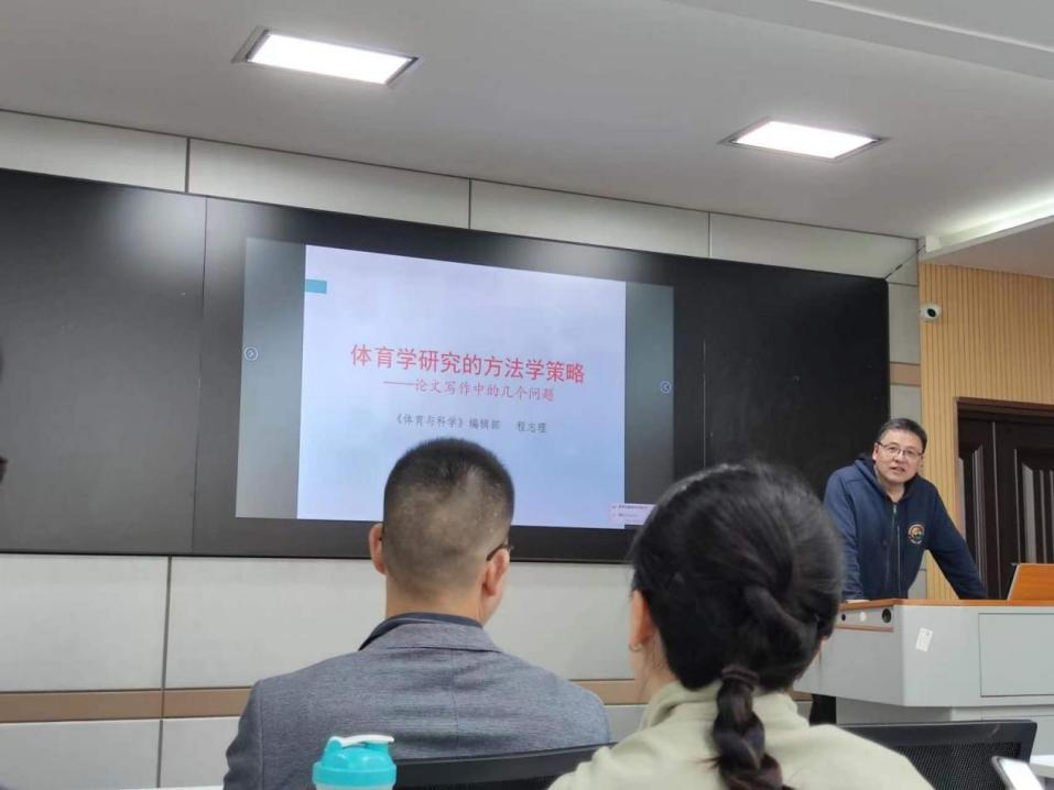 (通讯员聂顺琦)4月12日上午,我院在文科楼910会议室举行了“长大20年”学术论坛暨长江教育与体育讲坛2023年第二讲。本次特邀《体育与科学》杂志主编程志理研究员作为主讲,讲座题目为《体育学研究的方法学策略——论文写作中的几个问题》。讲座由张相乐院长主持,李臣、王积福、袁春梅、郭桂村等多名青年骨干教师及研究生聆听了讲座。