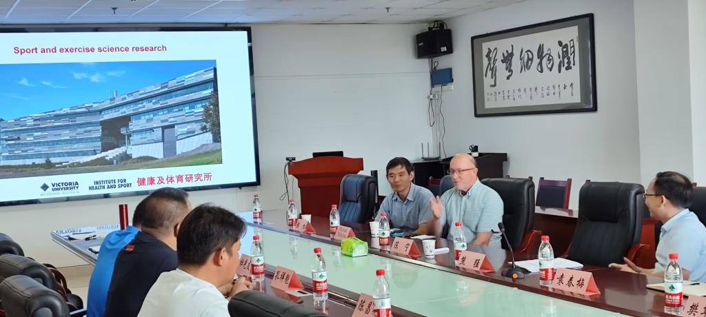 (通讯员 包可菲)为加速推进学院中长期学科发展规划,进一步做好学科建设工作,提升我院体育学一级学科点建设水平,6月26日下午维多利亚大学体育学院Michael McKenna教授、维多利亚大学健康及生物医学学院颜旭博士、武汉体育学院运动医学院陈宁教授莅临我院,在文科楼905举行运动与健康前沿科学座谈会, 我院全体体育学硕士生导师及研究生参加了研讨会,会议由熊猛副院长主持。