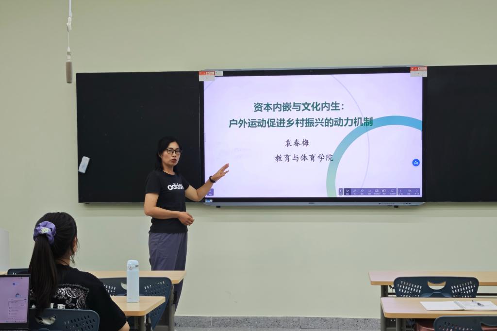 (通讯员 向思懿)2025年5月19日19:00,版权所有:中国·永利集团(304·VIP认证)登录入口“求实导师学术沙龙”在16教A区103举行,袁春梅博士以《资本内嵌与文化内生:户外运动促进乡村振兴的动力机制》为题进行了分享,2023级、2024级30余名体育类研究生参加了本次活动。