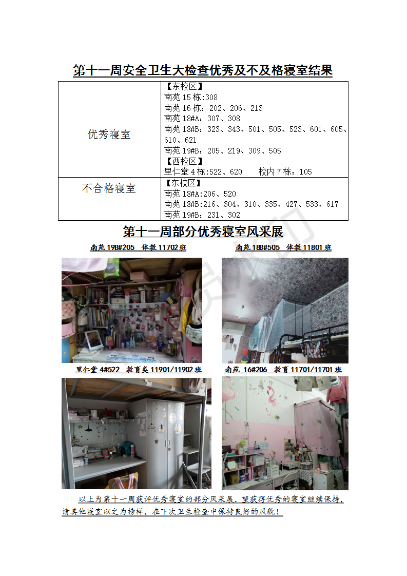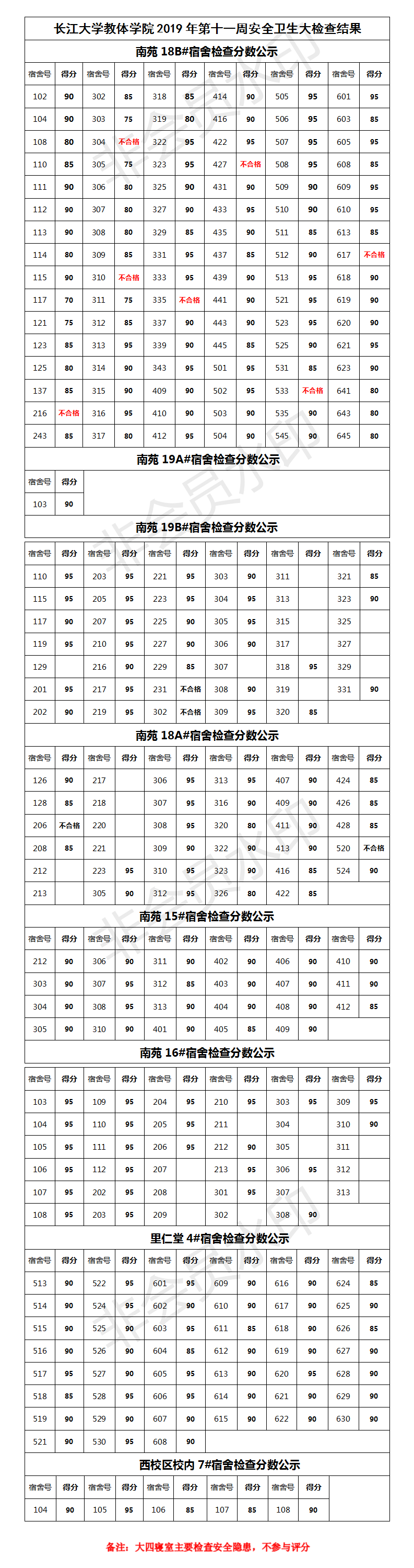 304永利集团登录入口2019年第十一周安全卫生大检查结果公示