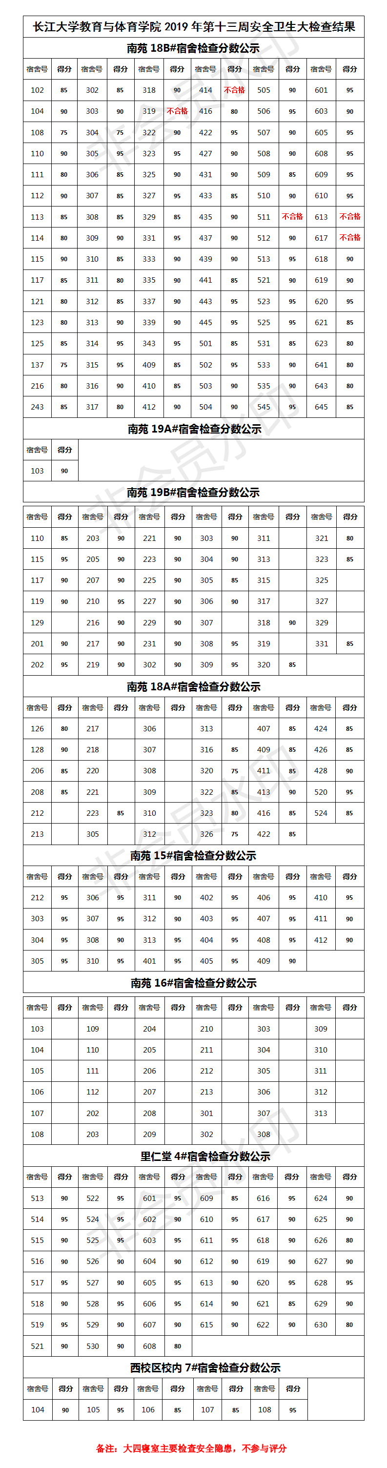 304永利集团登录入口2019年第十三周安全卫生大检查结果公示