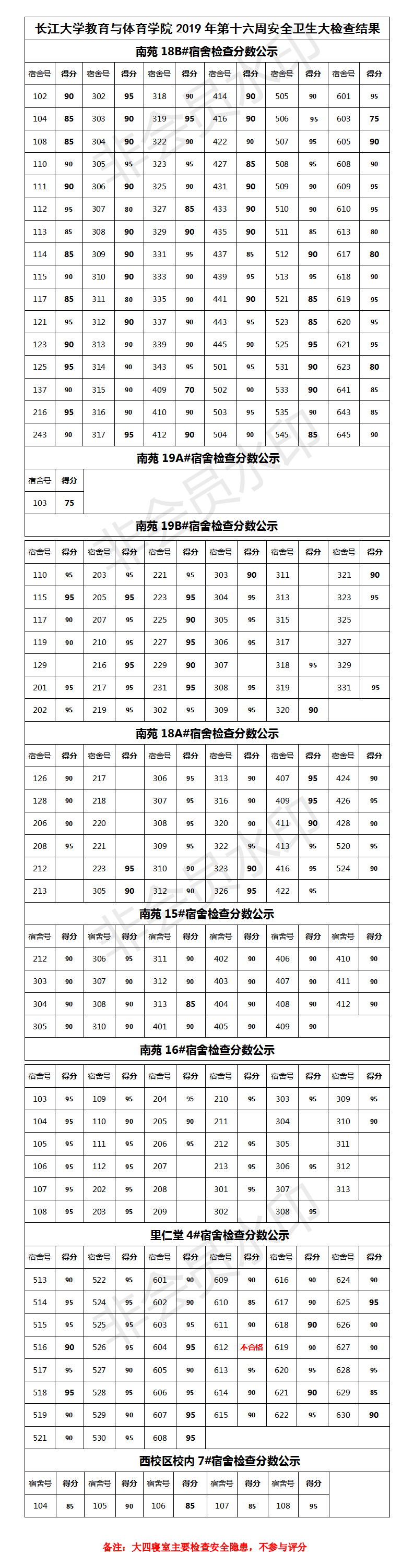 304永利集团登录入口2019年第十六周安全卫生大检查结果公示
