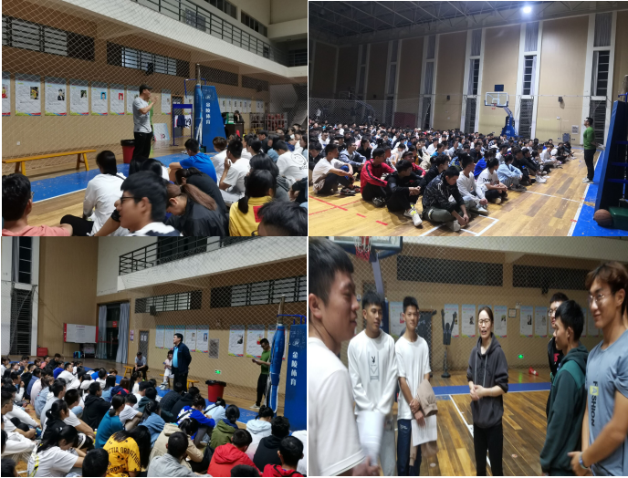 10月11日晚上7点,304永利集团登录入口体育类20级新生在南苑体育馆召开了第一次全员大会,班主任杨姗姗老师,覃俊平老师,张如江老师以及龙舟队主教练刘瀑老师,舞龙舞狮队主教练薛凌老师出席了本次大会,本次大会由年级辅导员文晓武老师全程主持。