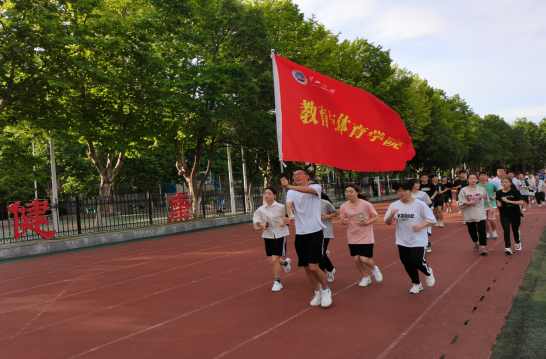 活动的最后学生代表刘圣明高举旗帜带领我院学生进行健康跑活动,至此教育与体育学院本次“千班唱红歌,万人健康跑”旗帜。