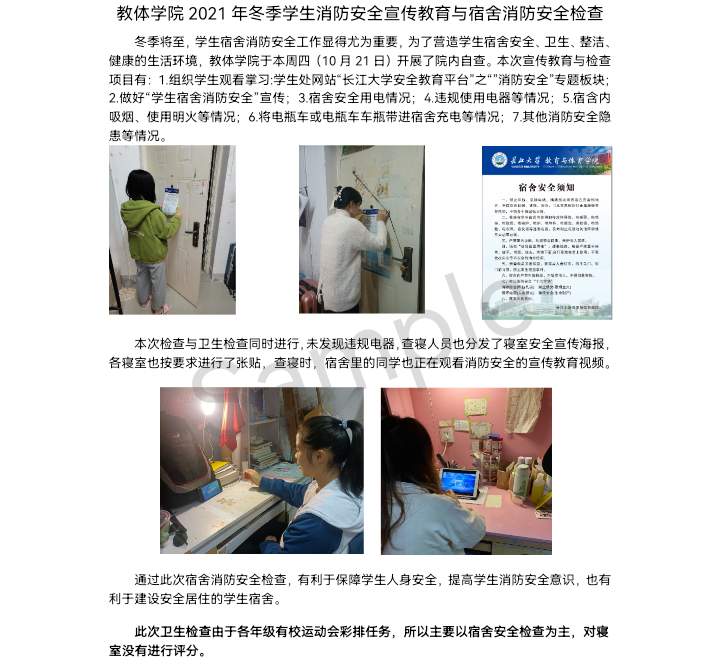教体学院2021年冬季学生消防安全宣传教育与宿舍消防安全检查结果通报