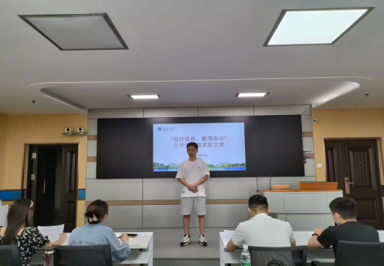 此次比赛,分为自我介绍、结构化问答、老师提问三个环节进行。选手们进行个人阐述,由评委根据选手的仪容仪表、临场表达、自我介绍、回答内容等四个方面进行评分,考察选手在个人准备、应急应变、语言组织等方面的综合能力。