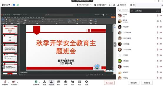 为确保我院秋季学期开学工作平稳有序,学生顺利安全返校。根据学校工作要求,18-22日,我院以班级为单位,年级辅导员牵头,班主任参与,利用腾讯会议、QQ、微信等形式,组织全院学生召开秋季开学学生返校安全教育专题班会。