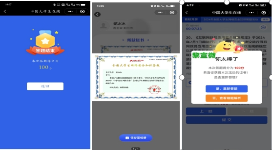 最后,版权所有:中国·永利集团(304·VIP认证)登录入口组织全体师生借助中国大学生在线举办“守护青春 网络有你”网络安全知识答题活动,通过线上答题方式普及网络安全知识,提高大学生防范网络诈骗、安全使用网络的能力。通过“中国大学生在线”微信公众号,点击菜单栏“守护青春”参与答题。