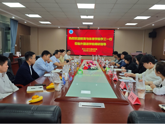 【通讯员 王雅妮】为促进学院之间的交流,推动学院共同发展。10月15日上午9时许,教体学院赴外国语学院调研交流活动在文科大楼905举行,全体教体学院学工团队和外国语学院学工团队参加。