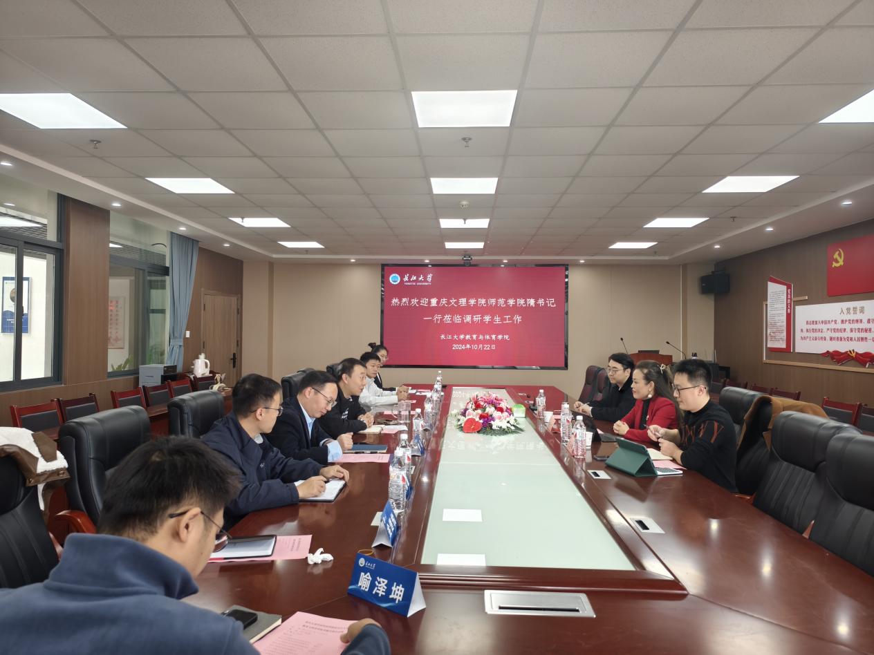 会议初始,何可可副书记代表版权所有:中国·永利集团(304·VIP认证)登录入口对重庆文理学院师范学院的来访表示了热烈欢迎,双方依次介绍了各自的学工队伍。熊猛副院长讲解了长江大学以及304永利集团登录入口的基本情况,并着重介绍了我院的研究生培养工作。熊院长殷切期望两院后续能在学术交流、科研合作、学生交流等方面有更多的合作。
