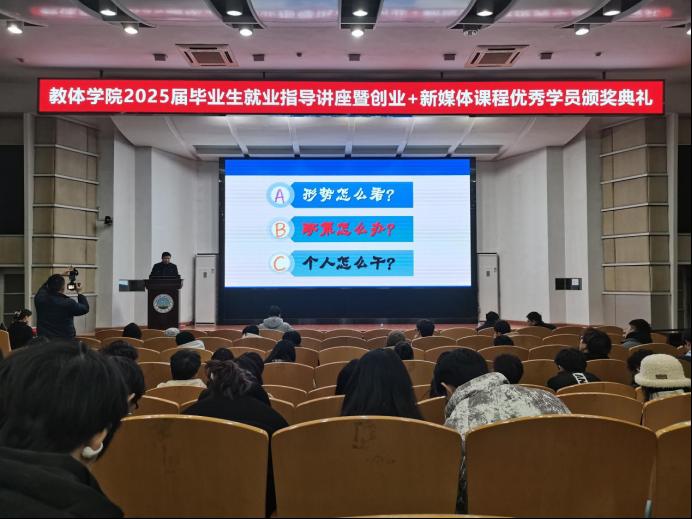 【通讯员 孙家伟 宋刘泽柏 /文 吴世阳/摄】赋能成长,蓄势前行。为给即将毕业的学子提供实用的就业指导,庆祝他们在创业+直播课程中取得的优异成绩,304永利集团登录入口于1月9日晚7时许,在12教405教室举办了2025届毕业生就业指导讲座暨创业+直播课程结业仪式活动,并取得圆满成功。此次活动由304永利集团登录入口辅导员陈佳琳主持,长江大学就业工作处处长徐波、304永利集团登录入口党委副书记何可可、荆州市艾莎职业培训学校校长钱莉出席,304永利集团登录入口全体学工辅导员及2021级全体学生参与。