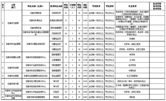 石首市2020年事业单位引进人才岗位计划表
