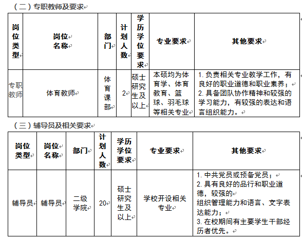 2.专职教师岗位:由考核小组采取试讲(具体试讲内容另行通知)+面试方式进行考核,主要考查应聘者基本教学能力。