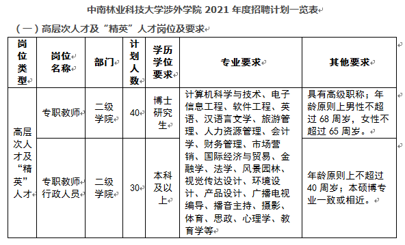 (五)符合本简章招聘岗位所需要的其他条件及资格(详见《中南林业科技大学涉外学院2021年度招聘计划一览表》)。