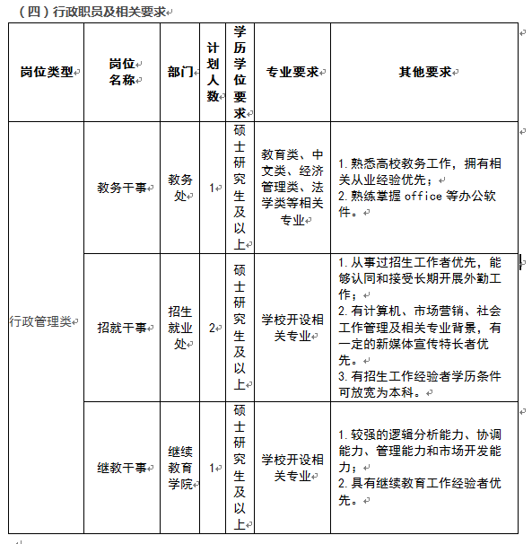 3.辅导员岗位:采取岗位能力笔试+面试等方式进行考核,主要考核应聘者的岗位基础知识及管理能力。