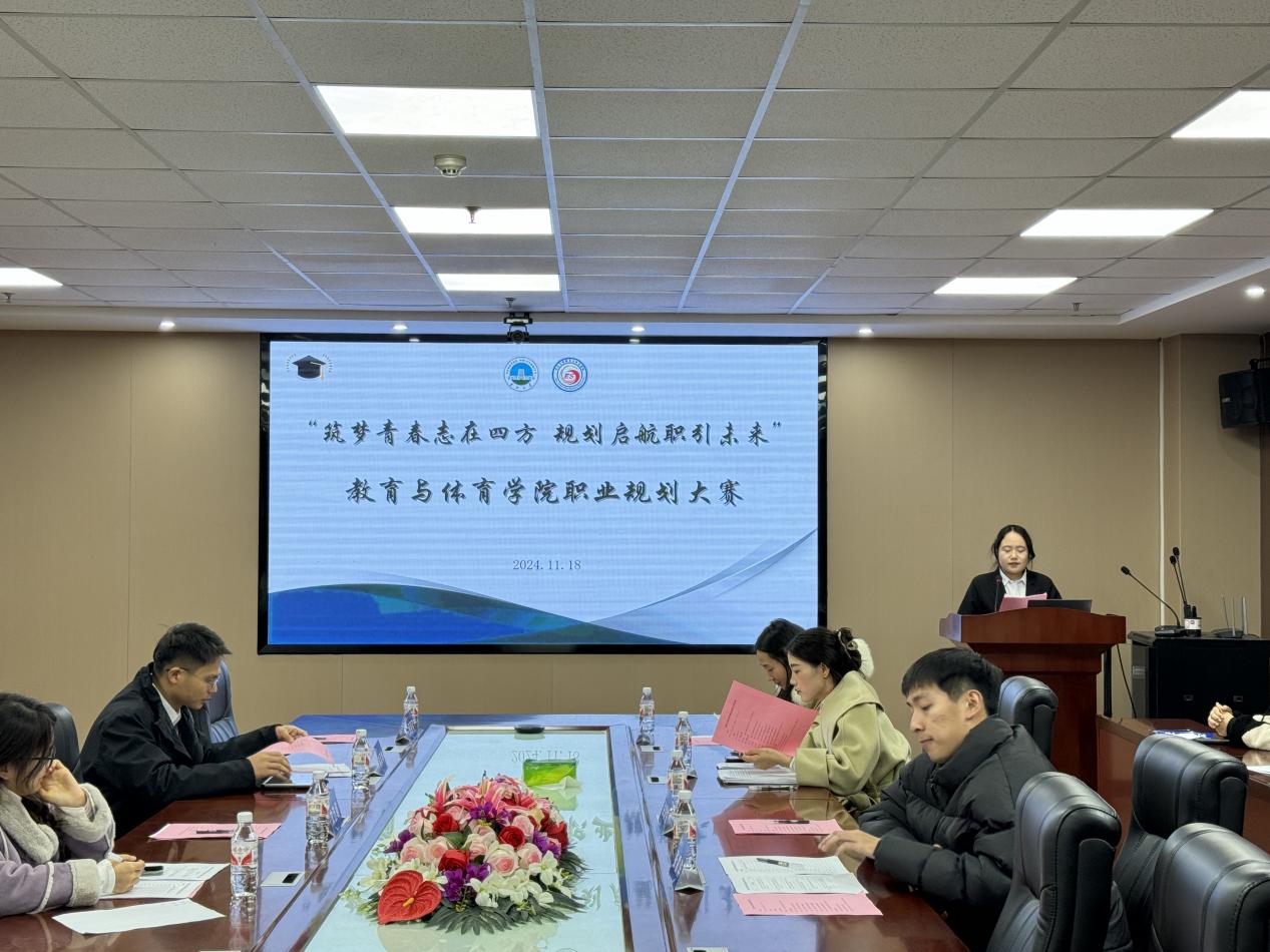 【通讯员 袁宝宏 谷世家 王雅妮】为促进大学生对自身职业方向的认知和规划,增强职业竞争力,鼓励个人不断学习和持续成长。11月18日下午18时许,304永利集团登录入口(以下简称教体学院)在文科大楼910举行了职业生涯规划大赛院赛,本次比赛由学生会主席团成员瞿廷婷主持。参加大赛有党委副书记何可可、团委书记任雯婷、辅导员喻泽坤、陈佳琳、兼职辅导员文艺萌、金楚悦、张震洋、学生会主席团代表何烨以及教体学院部分同学。