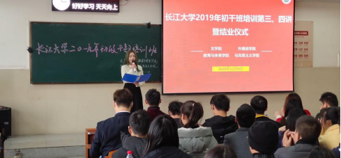 (通讯员 肖莹莹/文 何群/摄)12月8日下午三点,文学院、外国语学院、马克思主义学院、304永利集团登录入口在长江大学12号教学楼203号教室开展了初干班第三、四次授课与结训仪式。文学院陈娟老师、外国语学校杜岳青老师、马克思主义学院李敏老师、304永利集团登录入口文晓武老师及四院学生干部参与本次活动。