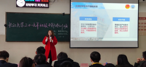 首先,文学院陈娟老师就《学生干部应处理好的几种关系》向干部们讲解了如何处理好学生与干部、学习与工作、老师与同学、工作群体与班集体之间的关系。陈老师围绕学生干部在学习与工作中需要注意的各种人际关系向干部们分享了许多处理人际关系的技巧,在处理关系方面提出了合理建议,要求干部们厘清自己的身份与职责,最后,陈老师希望大家都能成为社会所需要的、高素质、高技能的人才。