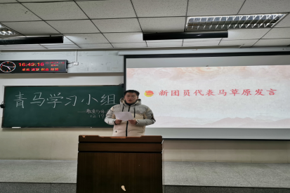 大会第四项,由新团员代表马草原同学代表新团员发言,通过自己对共青团的认识,提出三点目标,并号召所有团员努力拼搏,做出成绩,为共青团、为学校争光。