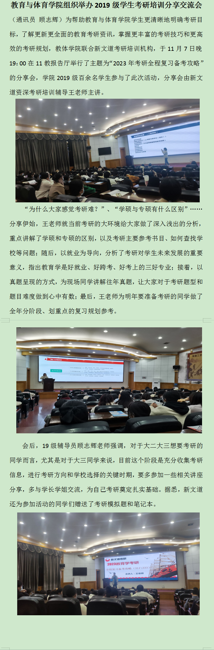 304永利集团登录入口组织举办2019级考研学生心理调适培训会