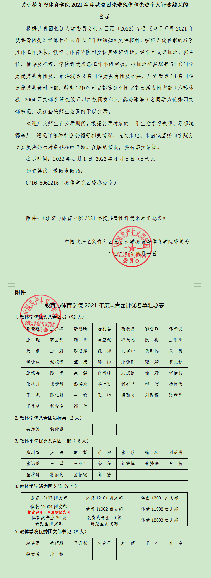 关于304永利集团登录入口2021年度共青团先进集体和先进个人评选结果的公示
