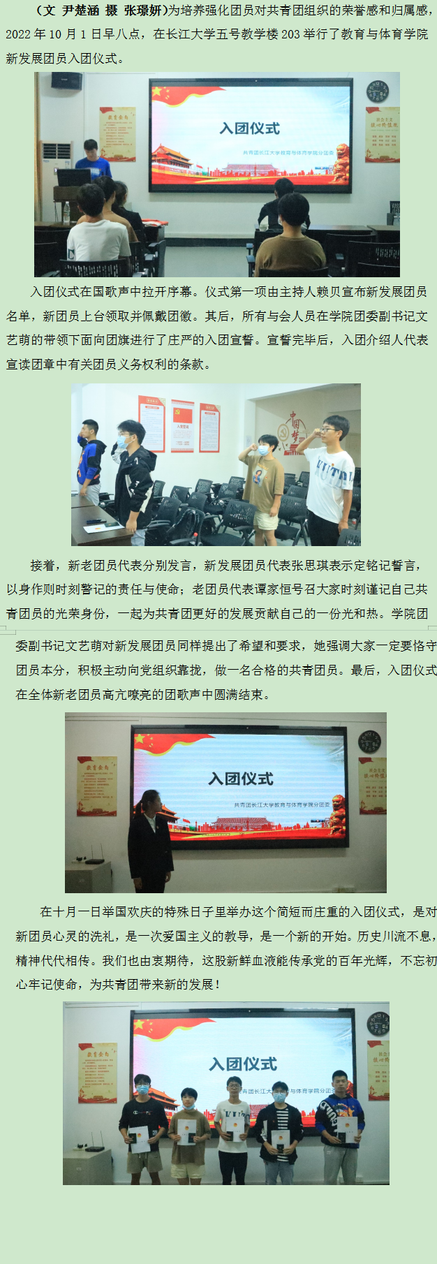 点青春之火,亮团徽之光 -- 教体学院举办2022年新发展团员入团仪式
