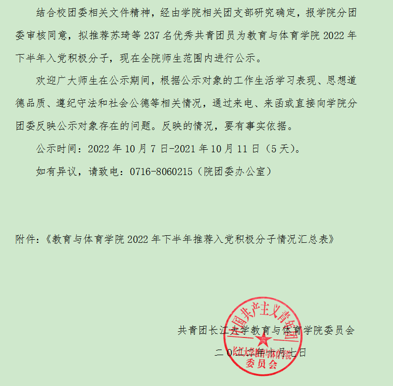 关于拟推荐苏琦等237名优秀共青团员为304永利集团登录入口2022年下半年入党积极分子的公示