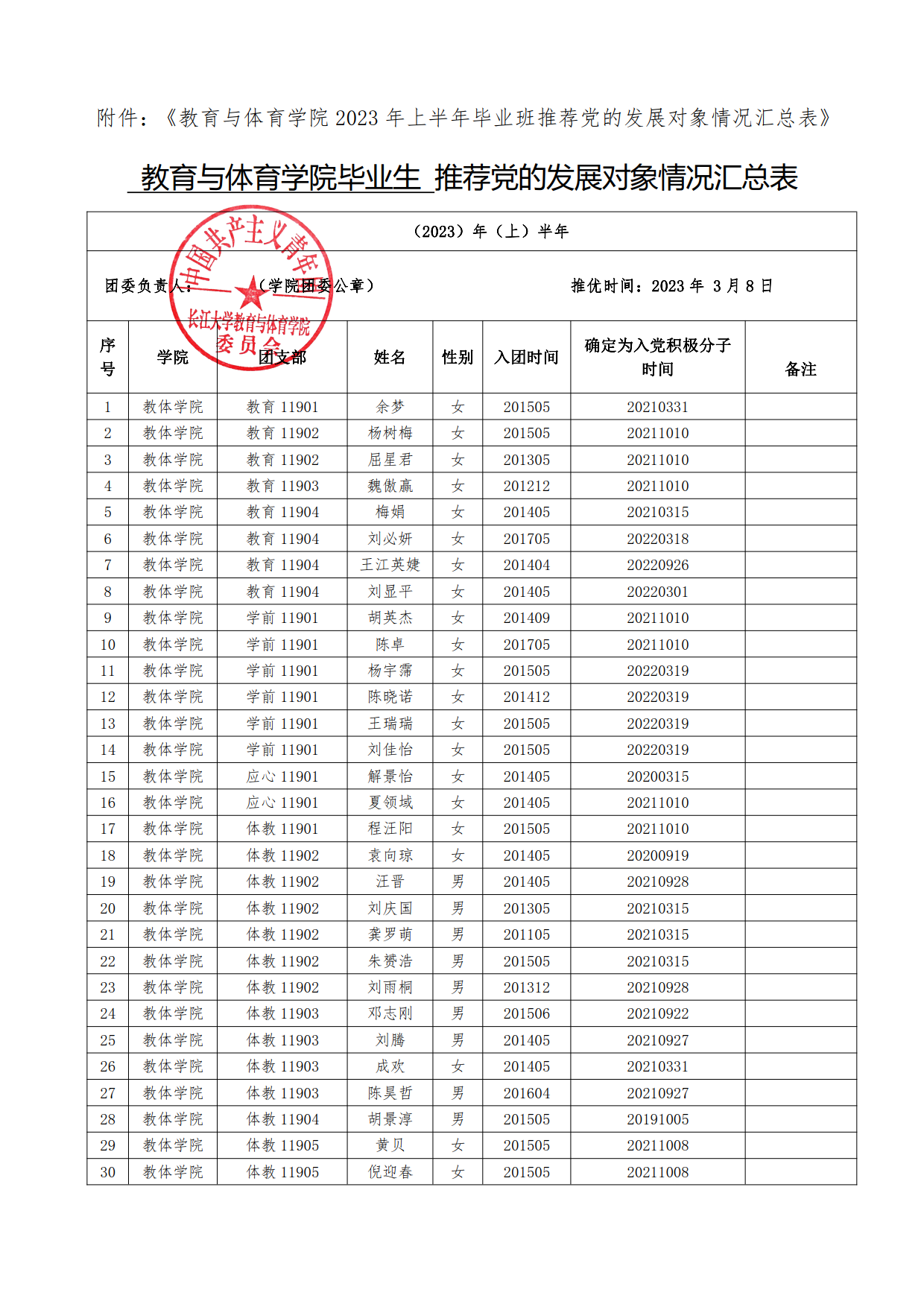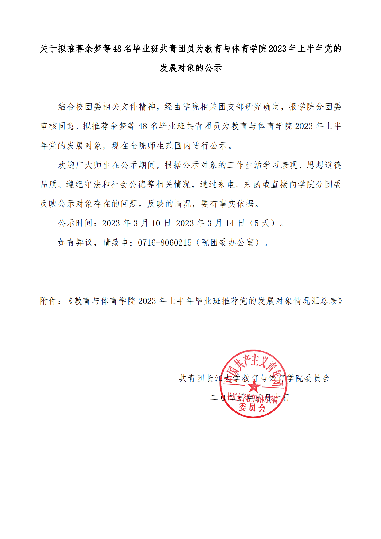 关于拟推荐余梦等48名毕业班共青团员为304永利集团登录入口2023年上半年党的发展对象的公示