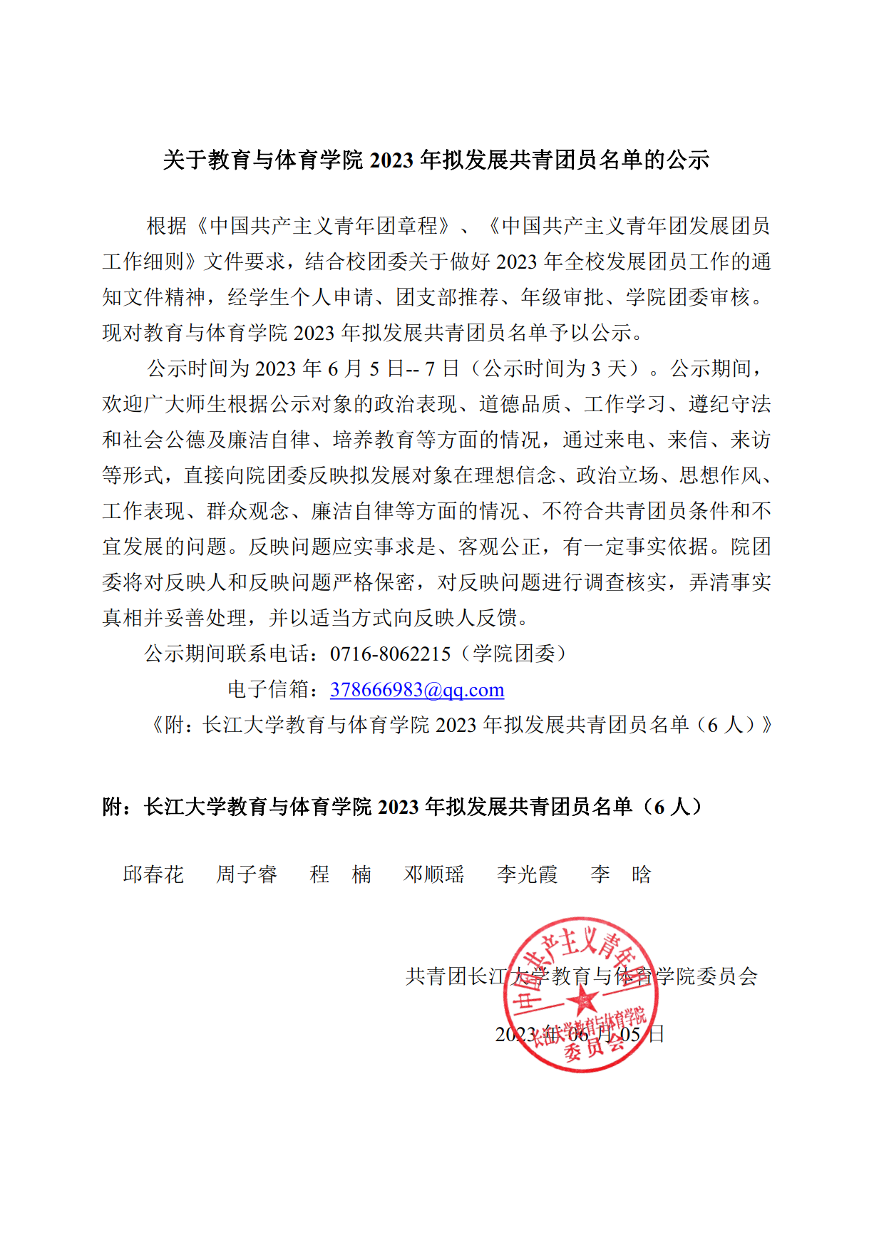 关于304永利集团登录入口2023年拟发展共青团员名单的公示