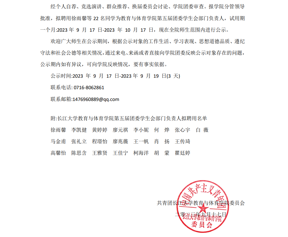 关于版权所有:中国·永利集团(304·VIP认证)登录入口第五届团委学生会部门负责人拟聘用名单的公示