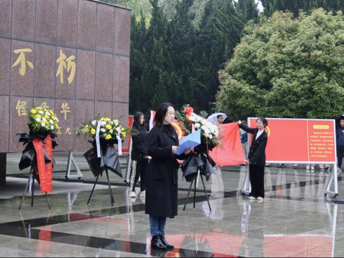活动伊始,全体肃立,奏唱国歌。学生代表为烈士们敬献花圈。烈士纪念碑前,全体学员整齐列队,鞠躬默哀,表达对革命先烈深切缅怀和崇敬之情。活动中,任雯婷老师发表讲话,她表示,同学们要铭记历史、心怀前人,不忘初心、不负祖国。同时,她呼吁学员们学习先烈们的坚强意志,做奋勇拼搏的一代人,担起中国青年的时代责任。全体学员在纪念碑前重温入团誓词,缅怀革命先烈的丰功伟绩,寄托对革命先烈的无限哀思。
